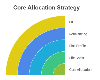 The purpose of Core allocation is to hold the investments that are tied directly to your life goals — retirement, children’s education, financial independence — and to protect them from your own short-term reactions to market noise.